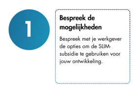 Wil je gebruikmaken van de SLIM scholingssubsidie? Bespreek dan met je werkgever welke opleiding je wilt volgen en zorg ervoor dat hij de factuur direct betaalt. Zo voorkom je dat je zelf met kosten blijft zitten.