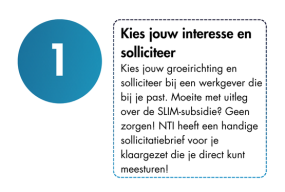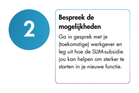 Als je solliciteert bij een werkgever voor een functie die in aanmerking komt voor de SLIM scholingssubsidie, kan de werkgever de scholingssubsidie aanvragen. SLIM is bedoeld voor werkgevers die hun medewerkers willen omscholen of verder ontwikkelen, vooral in cruciale sectoren. Heb je onze sollicitatiebrief al gezien? Die kan je helpen om je werkgever te overtuigen om de subsidie voor je aan te vragen.