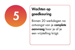 - Wachten op goedkeuring. Binnen acht weken hoor je of je een vrijstelling krijgt.